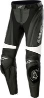Featuring an engineered fit designed to deliver the highest level of active race protection, these pants are Tech-Air® ready and can accommodate the Tech-Air®10 Airbag System with its extended hip protection, Ventilation panel on the knee delivers maximum airflow; the knee is CE Certified, even when the panel is open, ‘High Flex’ design for an optimized fit and enhanced freedom of movement, Comfort fit; design follows the contours of the knee for the optimal blend of comfort and freedom of movement, Optimized for an engineered women’s fit, Premium leather main chassis constructed from 1.3mm genuine bovine leather, Dual layers in exposed areas for additional abrasion resistance, Accordion leather stretch zones above the knee offer improved flexibility, Extended high rear waist construction provides greater overlap with the riding jacket, Extensive stretch panels on calf and crotch area for improved fit and feel, Pre-curved leg construction helps improve fit and reduce riding fatigue, Strategically positioned ventilation on thigh for internal air cooling, Alpinestars GP-R Lite internal protection on knee, Hook and loop waist adjuster for secure and personalized fit, Waist connection zipper allows attachment to Alpinestars riding jackets, Internal mesh lining with stretch panel inserts work in conjunction with outer stretch zones for freedom of movement, Replaceable Sport knee sliders for excellent impact and abrasion resistance